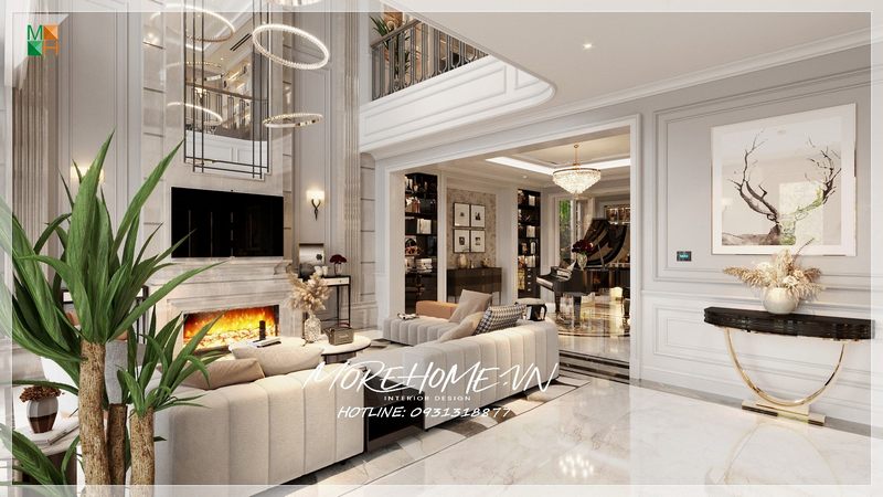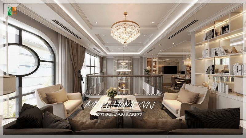 Bố trí nội thất tân cổ điển đẹp dành cho phòng khách trong căn hộ thông tầng như duplex, penthouse.