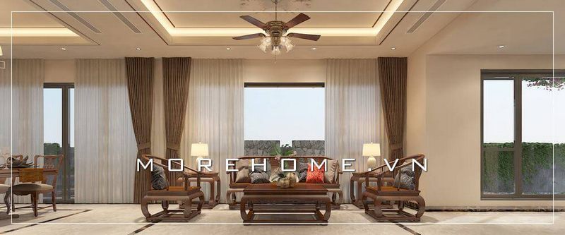 Gợi ý mẫu sofa phòng khách cho chung cư, nhà phố, biệt thự phong cách tân cổ điển cao cấp bằng chất liệu gỗ óc chó bọc nỉ Bỉ màu nâu sang trọng