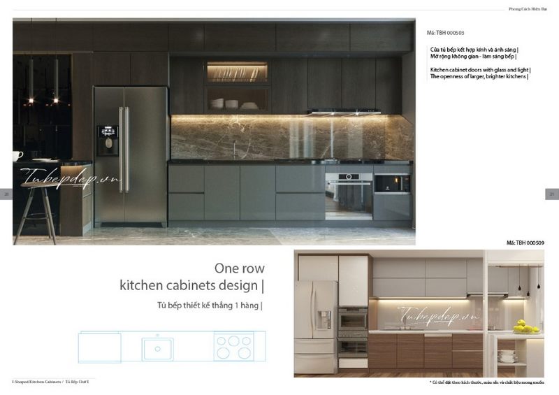 Mẫu tủ bếp âm tường chữ i là sự lựa chọn hoàn hảo cho gia đình có diện tích bé như chung cư, nhà phố