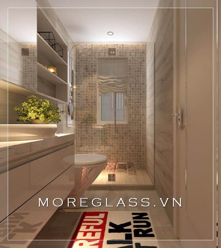 Không chỉ giúp tiết kiệm diện tích, việc sắp xếp không gian hiệu quả trong phòng tắm còn mang lại lòng thoải mái và tiện nghi cho người sử dụng. Có thể áp dụng thiết kế không thấu kính che chắn vùng vệ sinh và buồng tắm để ngăn nước bắn ra ngoài và tạo không gian riêng tư. Sử dụng đèn LED lắp sẵn trên các kệ treo hoặc gương cũng là một ý tưởng thú vị để làm nổi bật không gian và mang lại ánh sáng tự nhiên trong phòng tắm.