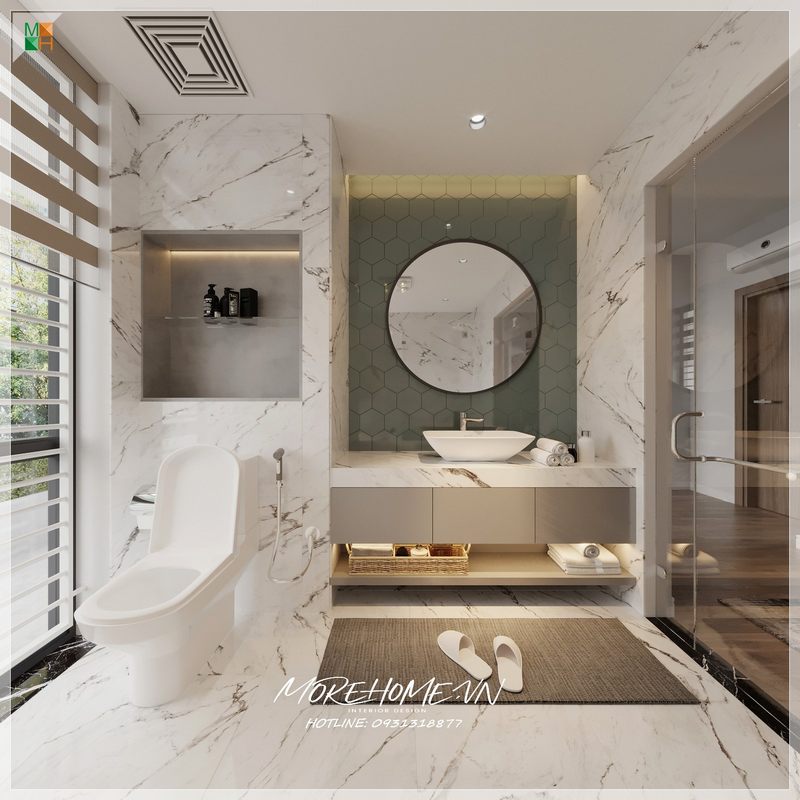 Việc thiết kế và thi công một nhà vệ sinh hiện đại cho các căn nhà phố, biệt thư được thực hiện.