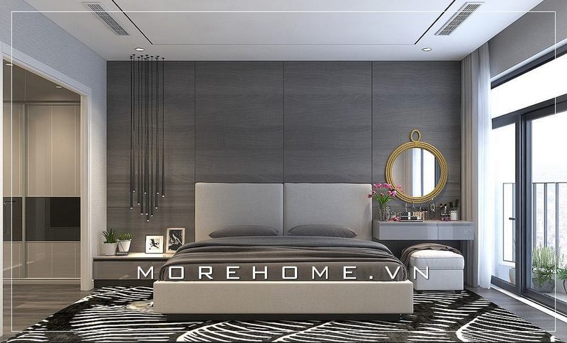 Mẫu giường ngủ hiện đại đẹp với màu xám nhẹ nhàng, thanh lịch là sự gợi ý hoàn hảo cho phòng ngủ Master, phòng ngủ bố mẹ hay vợ chồng mới cưới