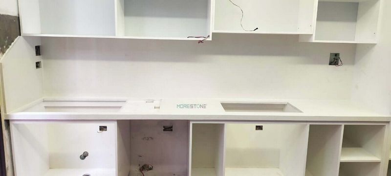 Khách hàng thích mẫu tủ bếp màu trắng làm từ chất liệu gỗ Acrylic vì nó mang đến sự sang trọng và tinh tế.