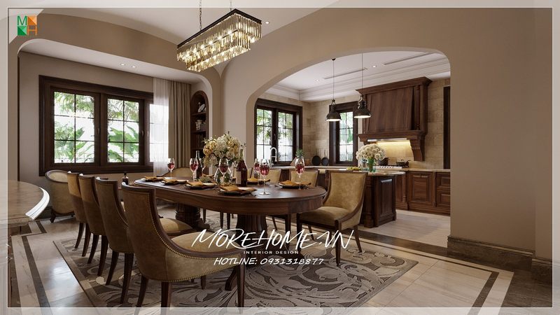 Sự giao thoa này không chỉ mang lại vẻ đẹp hiện đại mà còn tạo ra sự cân bằng hoàn hảo giữa nét ấm cúng của gỗ và sự lạnh lùng của kim loại hay đá. Chẳng hạn, bàn ăn gỗ tự nhiên kết hợp chân kim loại mảnh mai không chỉ tạo điểm nhấn cho không gian sống mà còn đảm bảo tính bền vững và chắc chắn.